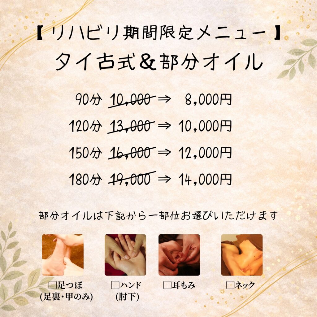 🔹全身オイルトリートメント:現在ご提供しておりません。